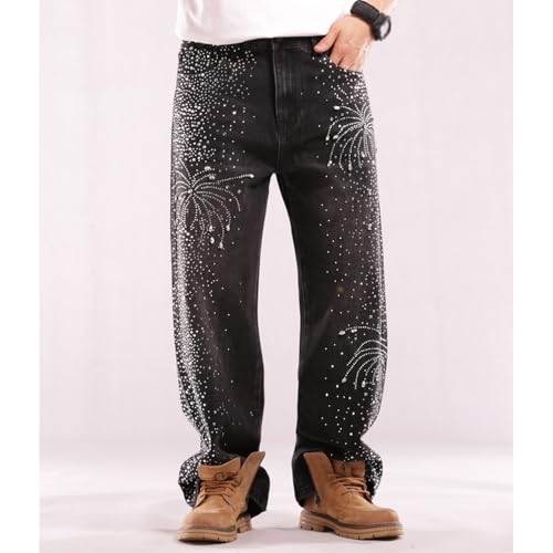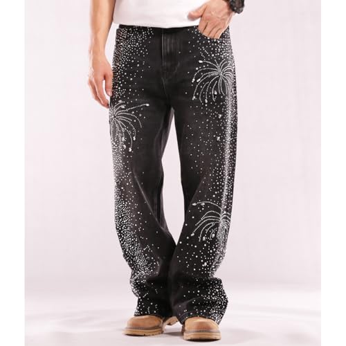 • Match: The men's baggy rhinestone jeans are perfect for casual everyday wear. Looks great with t-shirts, tank tops, oversized hoodie and jackets. Keep up with the trend and suitable for men of all ages
