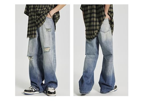 Jeans Pants Trouser Denim Retro Gradient with Hole Loose Straight High Street Men's 1