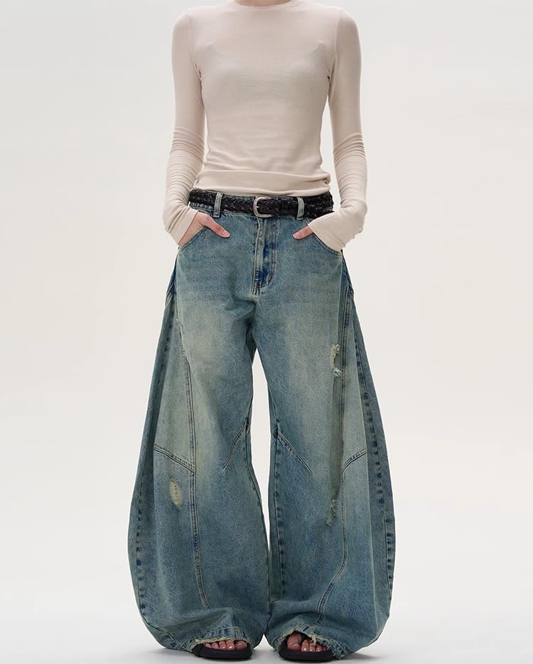 Men's Jeans American Vintage Oversized Curved-Leg Denim Pants Loose-Fit Trouser for Men 5