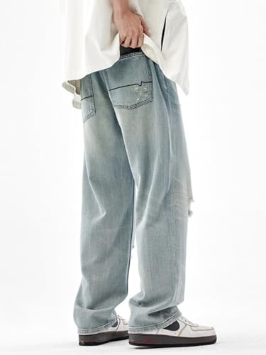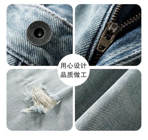 Jeans Pants Trousers Denim Summer High Street Ripped Men's Loose and Comfortable Straight Through Casual 6