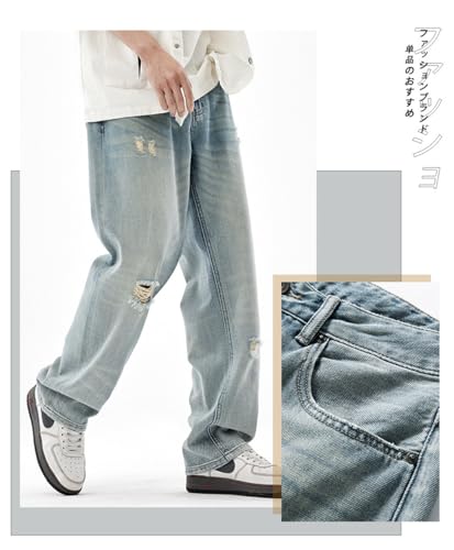 More information about Jeans Pants Trousers Denim Summer High Street Ripped Men's Loose and Comfortable Straight Through Casual