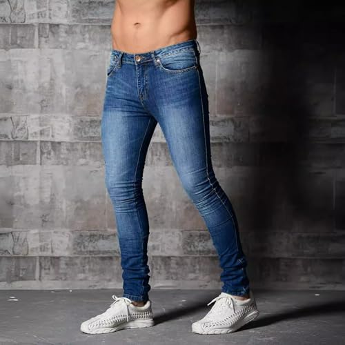 HOT ! Jeans Pants Trouser Denim Tight Street Trendy Micro Elastic Washed Blue Commuter Small Leg for Men