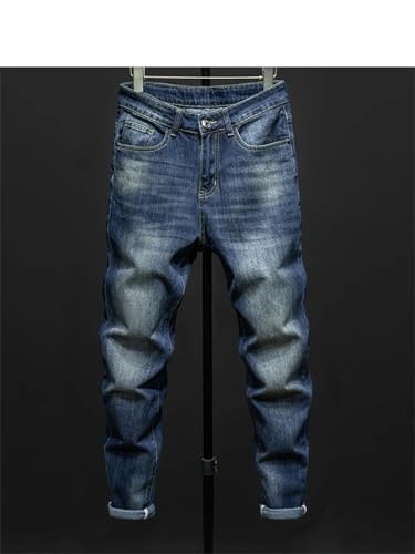 Men's Vintage Blue Slim Stretch Jeans Korean High Street Hip Hop Denim Pants