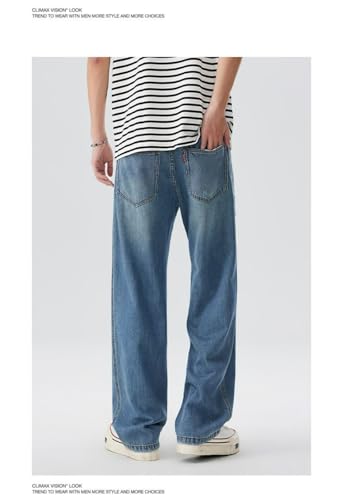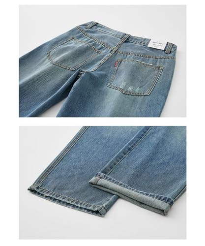 Jeans Pants Trousers Denim Fat Plus Trendy Street Washed Blue Loose Wide Casual Commuter Straight Leg for Men 7