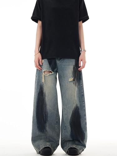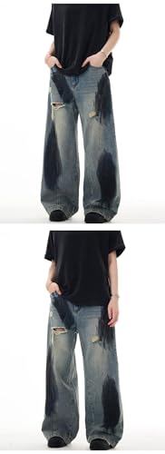 More information about GUOYUXIAO Men's Jeans Summer high-Street Distressed Denim Pants Loose Straight-Leg Wide-Leg Trouser for Men