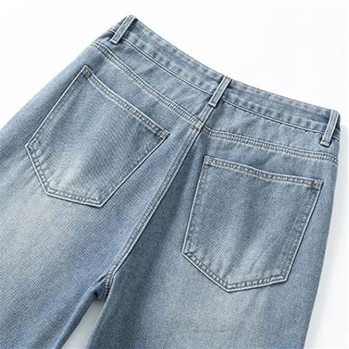 HOT ! Men's Casual Fashion Wide Leg Wash Jeans Baggy Leg Vintage Solid Color Straight Jeans
