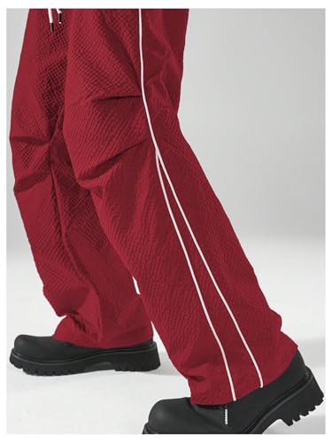 Floerns Men's Parachute Pants Y2k Baggy Drawstring Waist Straight Leg Track Casual Trousers Pants Streetwear 2