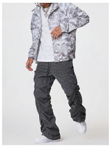 HOT ! OYOANGLE Men's Elastic Drawstring Waist Ruched Pants Y2K Parachute Pants with Pocket Streetwear