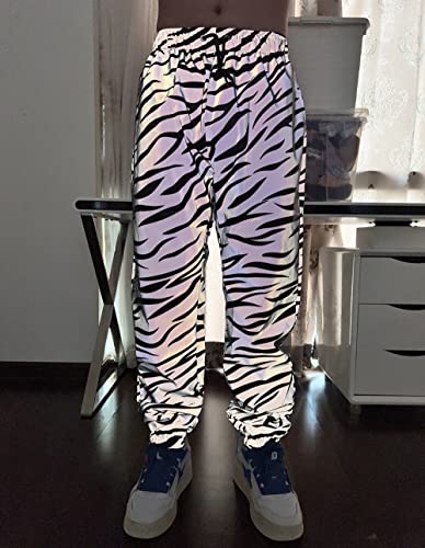 More information about LZLRUN Zebra Reflective Pants Men Hip Hop Dance Fluorescent Shiny Trousers Casual Harajuku Night Sporting Rave Jogger