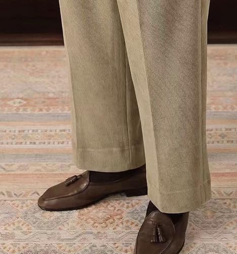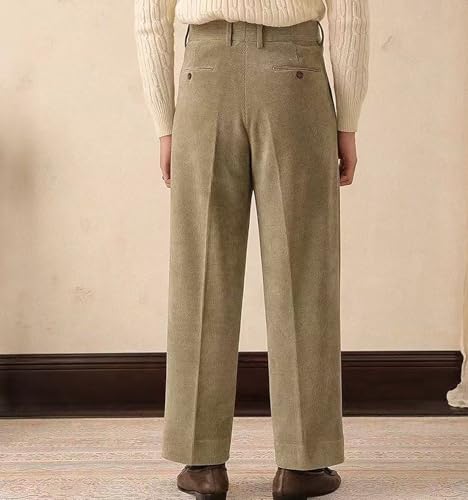 Mens Corduroy Pants Casual Warm Winter Leisure Straight Wide Leg Vintage Dress Trousers for Men 4