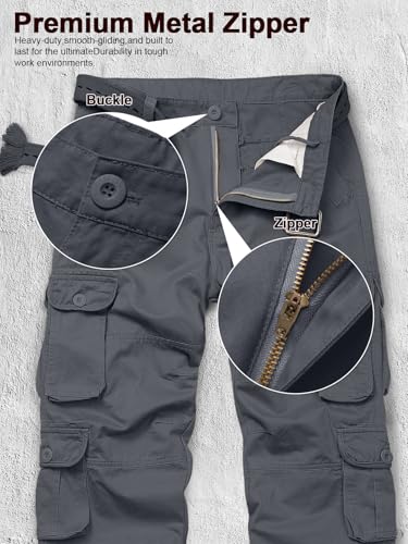 • Classic cargo pants with 8 pockets;they are all three-dimensional design,2 flat slant pockets for hands-free use and convenient access,4 cargo pockets provide secure equipment storage,2 back buttoned pockets provide deep, secure storage that makes it easier to carry additional personal things,Designed with a relaxed fit through the seat and thigh, these men's casual wear will keep you comfortable during any task.