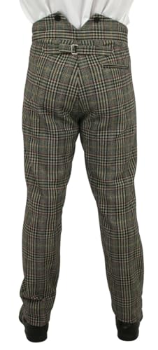 HOT ! Historical Emporium Men's High Waist Wool Blend Glen Plaid Trousers, Victorian Western Pants with Suspender Buttons