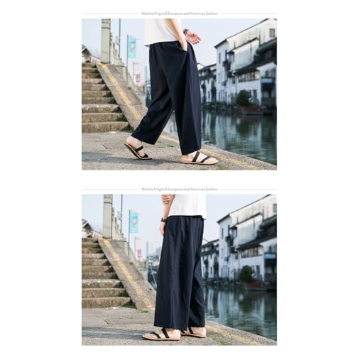 Why Choose Seidarise Men's Wide Leg Casual Harem Linen Japanese Yoga Harem Pants Hip hop Joggers Baggy Navy?