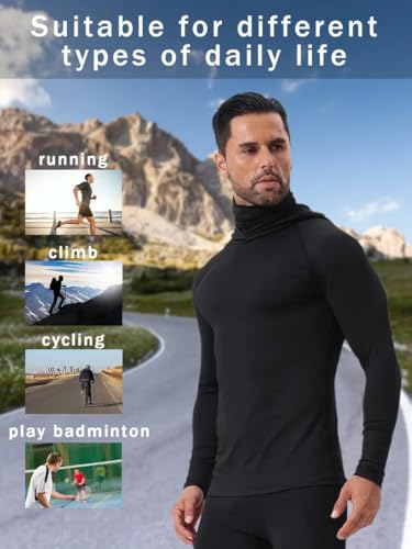 More information about 3-Piece Athletic Hooded Shirts Set, Long Sleeve Performance Tops with Built-in Face Cover, Black Navy Gray