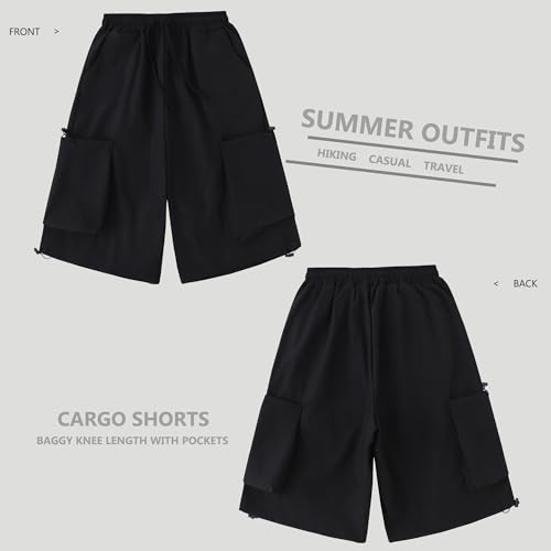 Cargo Shorts Women Y2K Baggy Knee Length Athletic with Pockets Hiking Waterproof Black Pants Men Summer Outfits 2