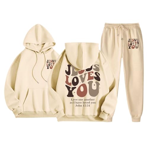 HOT ! Mens Tracksuits Jesus Loves You Letter Print Hoodies Pullover and Sweatpants Set 2 Piece Sweatsuits Christian Faith Outfits
