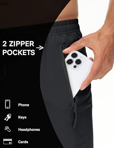 Forik Men's Lightweight Hiking Pants Quick Dry Waterproof Joggers Athletic Workout Sweatpants with Zipper Pockets