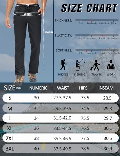 Fabric type: 92% Polyester, 8% SpandexCare instructions: Machine WashOrigin: ImportedClosure type: DrawstringQuick Dry & Water Resistant: The hiking pants for men are made of quick-drying water resistant material to shed light rain and stains, keeping you cool and comfortableZipper Pockets: Men's sweatpants feature 2 front zip pockets and a back pocket, offering secure space for your phone, keys, wallet and other daily itemsStretch Fabric: This mens lightweight joggers pants feature high-quality 4-way stretch material, ensuring flexibility and comfort on sportsElastic adjustable waist: Full elastic waist with drawstring for adjustable fit to do any workout and casual wearOccasion: Suitable for spring, summer and autumn outdoor and sports activities like hiking, running, fishing, camping, fitness, cycling, climbing, travelling and jogging Perfect for everyday use. High quality materials and excellent craftsmanship ensure long-lasting durability.