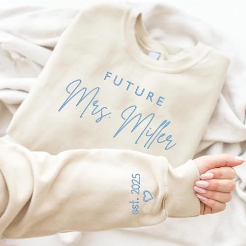 More information about Custom Embroidered Mrs Sweatshirt, Future Mrs, Bride Sweatshirt, Personalized Mrs. Last Name Pullover, Engagement, Bachelorette Wedding Gifts For Bride, Gifts For Wife, Her