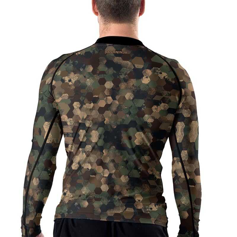 Camo Long Sleeve Compression Training Rash Guard Men's BJJ MMA Grappling - Breathable Fabric