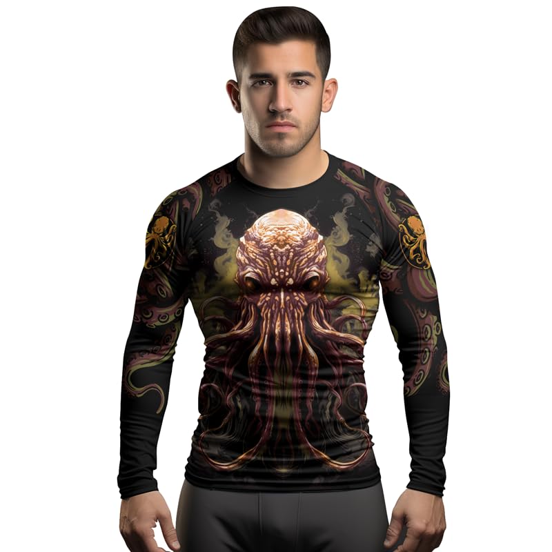 Octopus Long Sleeve Rash Guard Shirt for Men Compression Base Layer Jiu Jitsu MMA No-Gi BJJ Grappling 4-Way Stretch