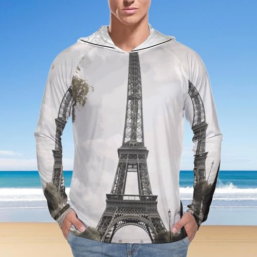 Men's Sun Shirts UPF 50+ Rash Guard Long Sleeve Sun Protection Hoodie Paris Eiffel Tower Lightweight Shirt M White 6