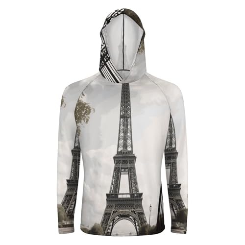 Men's Sun Shirts UPF 50+ Rash Guard Long Sleeve Sun Protection Hoodie Paris Eiffel Tower Lightweight Shirt M White 7