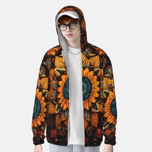 HOT ! Men's UPF 50+ Sun Protection Hoodie Long Sleeve Fishing Shirts Quick Dry Abstract mandala Sun Shirt Jacket