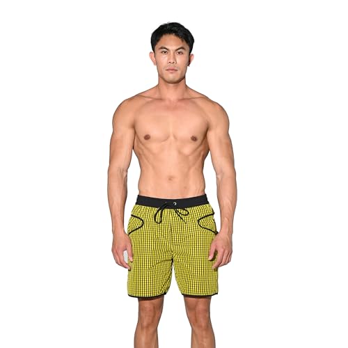 Men’s Ultra-Lightweight Pocket Board Shorts Fast Dry Surf Lining Swimwear Plaid Pattern B4570 4