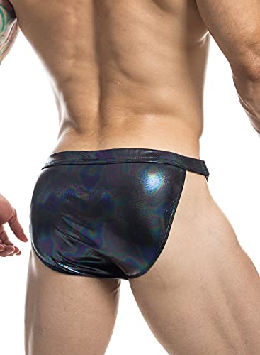 HOT ! MIZOK Mens Sexy Swim Bikini Briefs Shiny Metallic Thong G-String Jockstrap Underwear with Hip Coverage