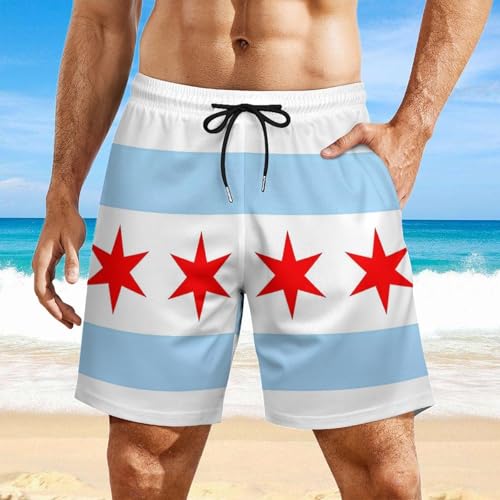 Barbados Flag Men's Beach Shorts Quick Dry Swim Trunks with Pockets Compression Liner Boardshorts for Men