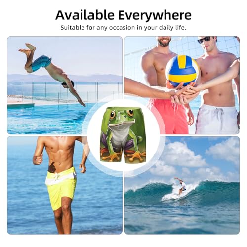 Cartoon Frog Men's Soft Double Swim Shorts, Lounge Swiming Shorts Pants Breathable Summer