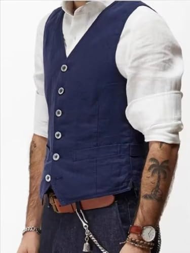 More information about Men's Summer Linen Vest Slim Fit Vintage Suit Vest Beach Wedding Casual Waistcoat for Party Groomsmen