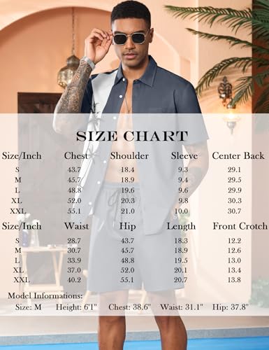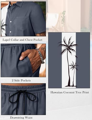 LecGee Men's Hawaiian Shirts Sets Button Down Coconut Tree Hawaiian Shirt Shorts 2 Piece Hawaiian Outfits