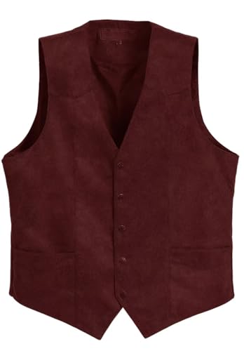 More information about Men's Single Breasted Suede Vest Cowboy Retro Casual Faux Leather Waistcoat for Party