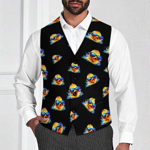 Rubber Duck with Glass Suit Vest for Men Slim Fit Tuxedo Waistcoat Button V Neck Business Coat 6