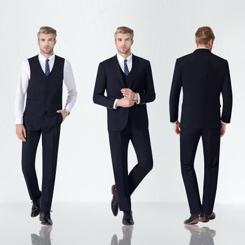 HOT ! LUPURTY Suits for Men, 3 Piece Men's Suit Slim Fit, Solid Jacket Vest Pants with Tie, One Button Tuxedo Set