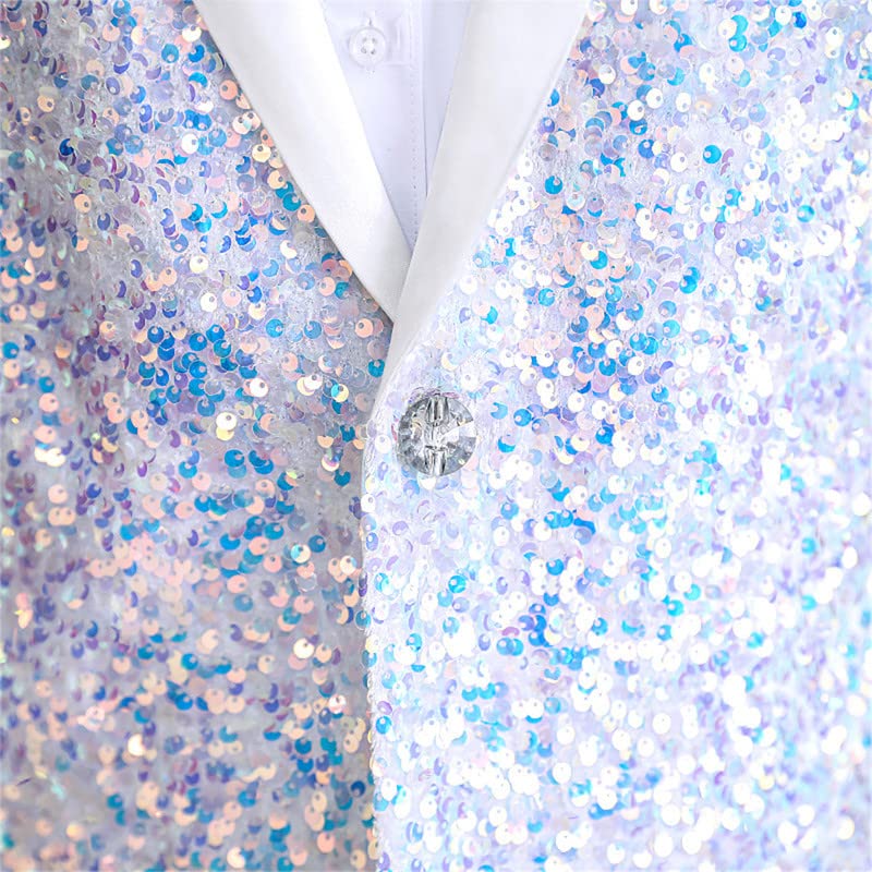 Men's Sequin Suit Jacket 1 Button Shiny Slim Fit Blazer Sport Coats Stylish Dinner Tux Dress Discoloration