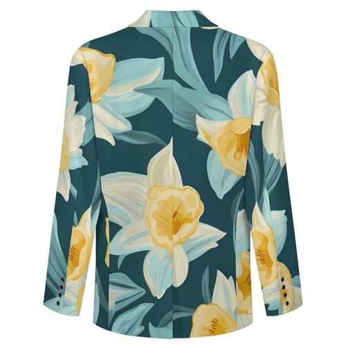 Daffodil Flowers Men's Fashion Slim Fit Casual Print Button Suit Jacket Notched Lapel Blazer
