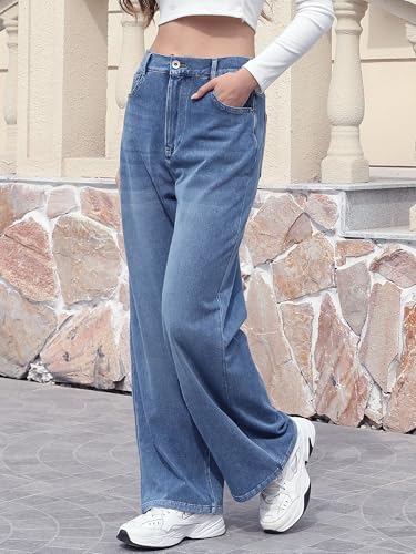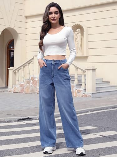 Fabric type: 42%Cotton,38.4%Nylon,19.6%SpandexCare instructions: Machine WashOrigin: ImportedClosure type: Button【Denim Look, Sweatpants Comfort】Made from 4-way stretch knitted denim, these Sweatpant Jeans are soft like sweatpants, super breathable, and still maintain the classic look of jeans, offering the cozy, skin-friendly feel of sweatpants while keeping the classic style of denim【Elastic Waistband & Button Closing】These Wide Leg Jeans Woman Designed with a back stretch waistband for easy slip-on wear, these jeans offer both a pull-on style and a traditional button and zipper ,Perfect for those seeking comfort, style, and practicality【Relaxed, Flattering Style】Featuring a loose, wide-leg silhouette and a straight cut, these jeans provide a flattering, relaxed look that pairs well with any top. Perfect for casual outings or dress-down days【Practical and Stylish】These Straight Leg Jeans for Women feature four practical pockets and a watch pocket for your phone, cash, and keys, offering both convenience and style. The included belt ensures a secure fit, blending comfort, practicality, and effortless fashion【Tips & Care】Machine washable; iron at a low temperature if necessary. Please refer to our Size Chart for an accurate fit before ordering Perfect for everyday use. High quality materials and excellent craftsmanship ensure long-lasting durability.