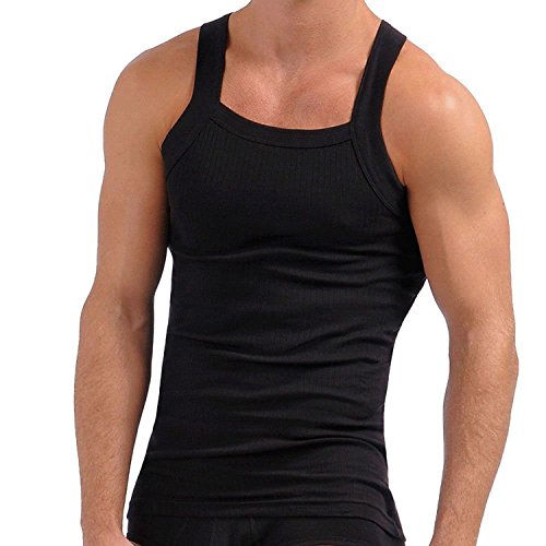HOT ! John Son Super Heavy Weight Square Cut Tank Top - 2 Pack (1XL, Black)