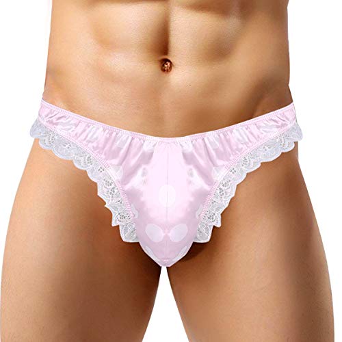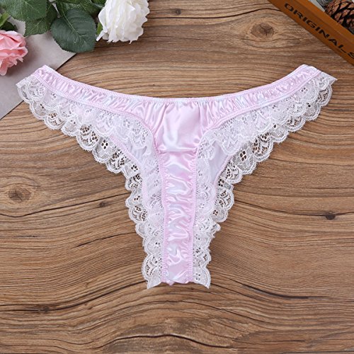 Why Choose Men's Sissy Silky Satin Lace Trim Panties G String Thong Ruffles Bulge Pouch Lingerie Briefs?