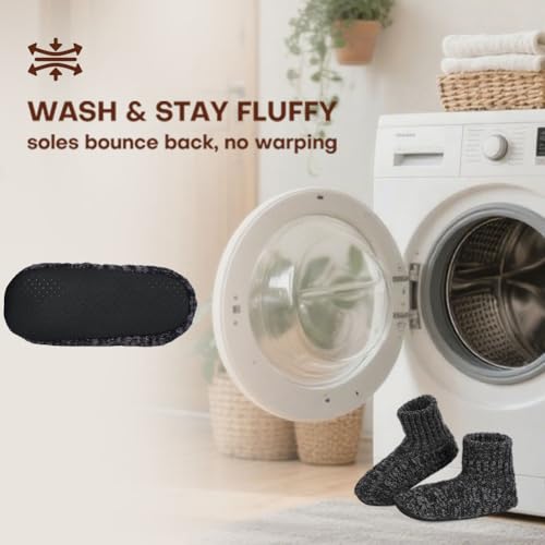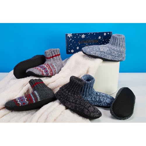 Warm and Comfy: Made of soft plush fleece and wool like yarn (55% acrylic, 45% polyester), these house slippers are designed for women who have wide feet, long nights, and chilly evenings, will keep your feet warm and toasty, providing ultimate comfort and relaxation. They come with everything you need to make your feet comfortable and allow you to walk around in style. These fuzzy sock slippers are perfect for anyone who likes to spend time in their cabin for cold weather as foot warmers.Non-slip Grip: These cozy and fuzzy socks have anti-skid grippers on the sole for better traction on any surface. The grippy texture on the sole prevents slipping and sliding, making them great slipper socks for indoor use on wood, tile, or other smooth surfaces. Our shoe socks are perfect for men who love barefoot-style shoes, grips, or a cushioned sleeping experience. They are also great for those who suffer from cold feet or sweaty bottoms.Perfect Gift Idea: Surprise your loved ones with these unique house shoes, which make a great present for Holiday, Christmas, Thankgiving, Valentine's Day, Father's Day, Birthday or any other occasion. Our indoor shoes are the essential item for any man who regularly experiences cold feet, dry skin, or swelling. They are perfect for anyone who wants to enjoy a comfortable and cozy sleeping experience, and it's a great way to keep the warmth during the nights.Fits Most Men's Foot Sizes: These fluffy warm slippers are available in men's size 9-11, 11-13 and can fit wide width feet, making them ideal for anyone from men and dads to grandpas and elderly people. Our bootie slippers are unique, with a foldable design that allows for easy storage and transport. They come in a pack of two. Keep your feet warm and fashionable with these amazing comfy slippers!Easy to Clean: These cozy bedroom slippers are machine washable, making them easy to clean and maintain. These indoor slippers are made with high-quality polyester and acrylic blended that can endure frequent use and washing without losing shape or color. You can wear them at home, in the office, during travel or even in the hospital. Perfect for everyday use. High quality materials and excellent craftsmanship ensure long-lasting durability.