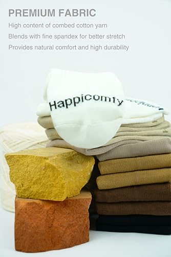 Fabric type: 78% Cotton, 19% Nylon, 3% SpandexCare instructions: Machine Wash, Tumble Dry Low HeatOrigin: ImportedFit type: RegularCushioned Bottom: This comfy cushioned design not only offers your feet comfort like stepping on the soft clouds but also reinforces the bottom from toe to heels to perform great durabilityStable Arch Compression: The arch compression provides the secure-fit to withstand slippage and increase the overall sock's wearing stability for various everyday activities, such as work, sports, parties, and so onQuality Fabric Blend: The combed cotton blended with high-quality elastane ensures the sock's best-possible performance for comfort and stretch, and the added nylon improves the durability to the next-levelQuantity and Size Information: 1 pack includes 6 pairs of cushioned crew socks which offer a wide size range from US men's shoe sizes 6-13Happicomfy's aesthetic: We offer products with a comfortable wearing experience, long-term durability and easily matched style, and this is the aesthetic we stick to Perfect for everyday use. High quality materials and excellent craftsmanship ensure long-lasting durability.
