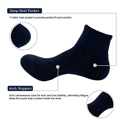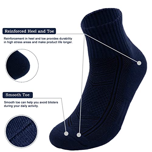 Mens Combed Cotton Cushioned Athletic Running Ankle Quarter Socks (5 Pack) w/Arch Compression