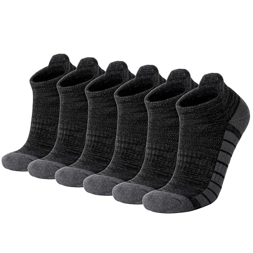 6 Pairs Ankle No Show Running Hiking Athletic Socks for Men Women Sport Cushioned Black Grey Socks 6
