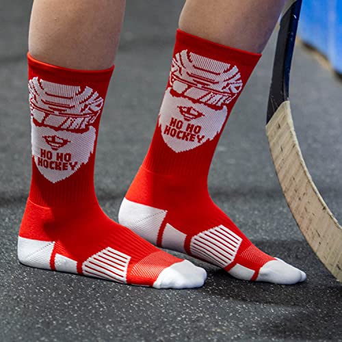 ChalkTalkSPORTS Hockey Athletic Woven Mid-Calf Socks | Ho Ho Hockey Socks | Red