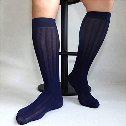 GAOGAO Super Thin Men's Stripe Dress Socks Sweat Absorbing Knee High Socks Business Over The Calf Stocking 7