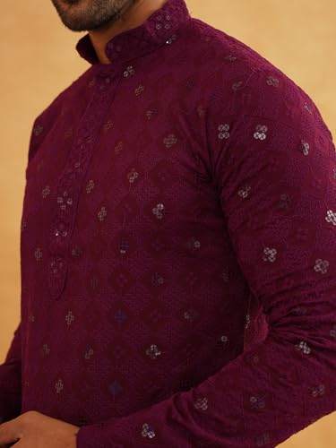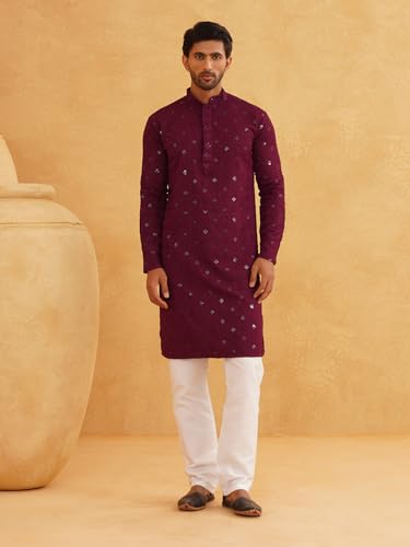 Why Choose Sojanya (Since 1958 Men'S Cotton Embroidered Sequinned Kurta With White Churidaar Pyjama?