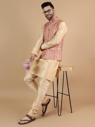 Why Choose WINTAGE Men's Digital Print Cotton Silk Gold Modi Nehru Jacket & Kurta Payjama Set?